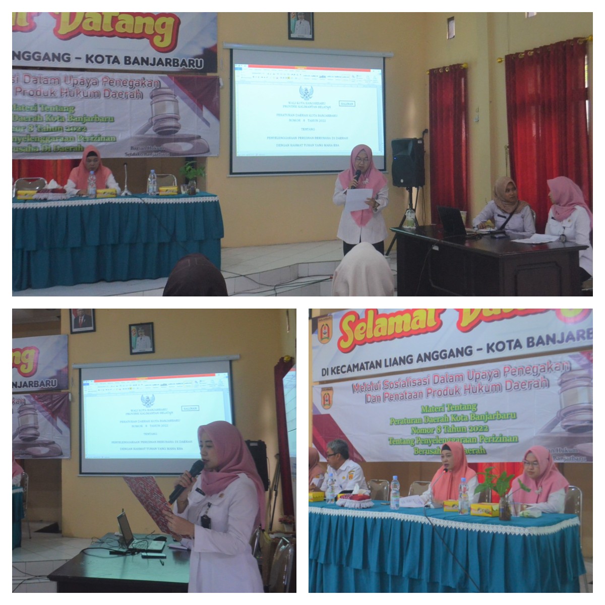 Diawali dengan sambutan Panitia Penyelenggara Bagian Hukum mewakili Kabag Hukum disampaikan oleh Ibu Humratun Adawiyah, SH, Penyuluh Hukum Ahli Muda, dan sekaligus bertindak sebagai Moderator.