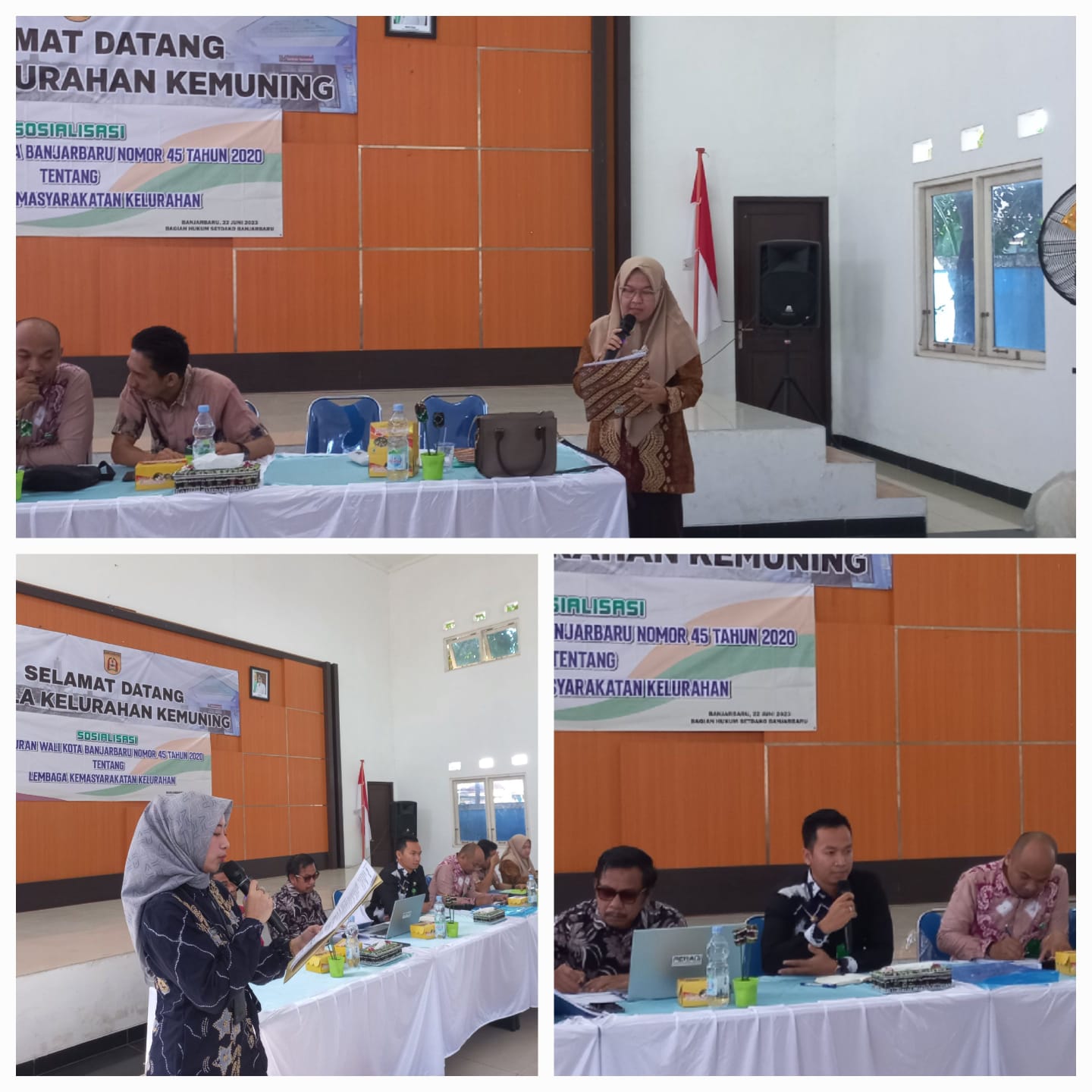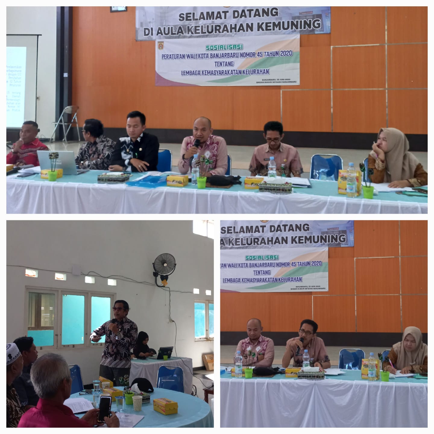 Acara selanjutnya sambutan dari Kasi Pemerintahan Kelurahan Kemuning sekaligus membuka secara resmi kegiatan Sosialisasi Peraturan Wali Kota Banjarbaru No. 45 Tahun 2020 tentang Lembaga Kemasyarakatan Kelurahan di Aula Kelurahan Kemuning.