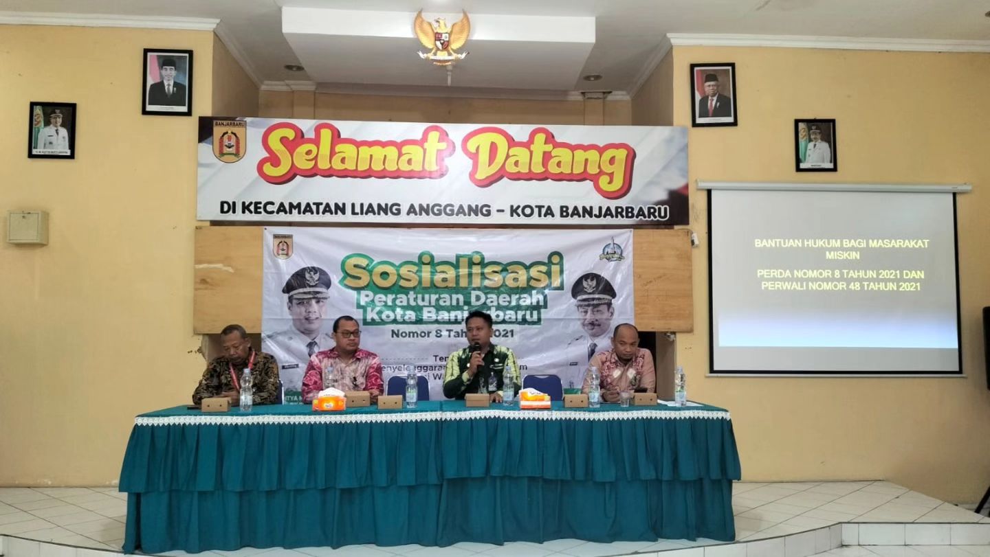 Bagian Hukum telah melaksanakan Kegiatan Sosialisasi Peraturan Daerah Kota Banjarbaru Nomor 8 Tahun 2021 Tentang Penyelenggaraan Bantuan Hukum Bagi Warga Miskin pada hari Kamis, 26 Oktober 2023 yang bertempat di Aula Kecamatan Liang Anggang.